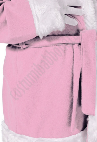 Il costume è realizzato interamente in morbido e resistente pile, decorato con elegante pelliccia con pelo lungo 2 cm, della larghezza di 7 cm, di colore bianco neve, che gli conferisce un aspetto favoloso.
